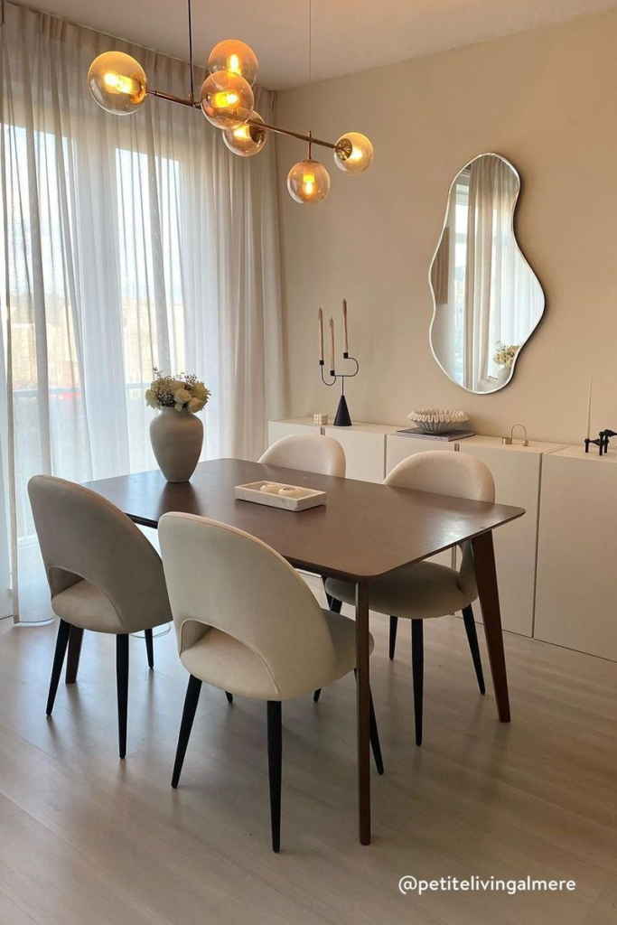 Les miroirs possèdent cette capacité magique de multiplier la lumière et de créer une illusion d’espace. Placé stratégiquement sur un mur du salon ou de la salle à manger, un grand miroir reflète l’autre zone, créant une profondeur visuelle tout en renforçant la perception d’unité.