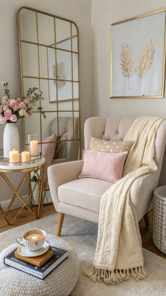 Positionnez stratégiquement votre miroir pour qu’il reflète directement une source lumineuse naturelle. Cette astuce multiplie l’intensité de la lumière et illumine instantanément les zones sombres de votre salon.
