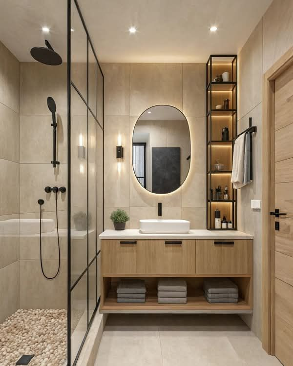 - Astuce : Pour une salle de bains petite, un meuble sur mesure ou une simple planche en bois peuvent faire des merveilles et désengorger les autres zones de vie.
