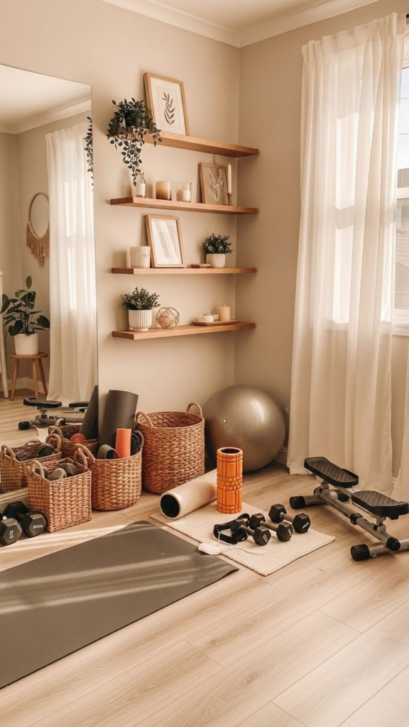 6. Salle de sport maison avec rangement mural